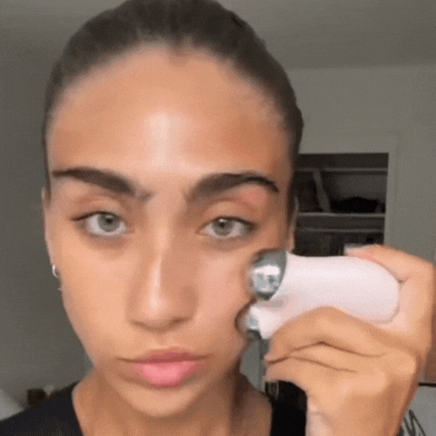- using a medium amount of pressure, glide the device along your faces natural contours